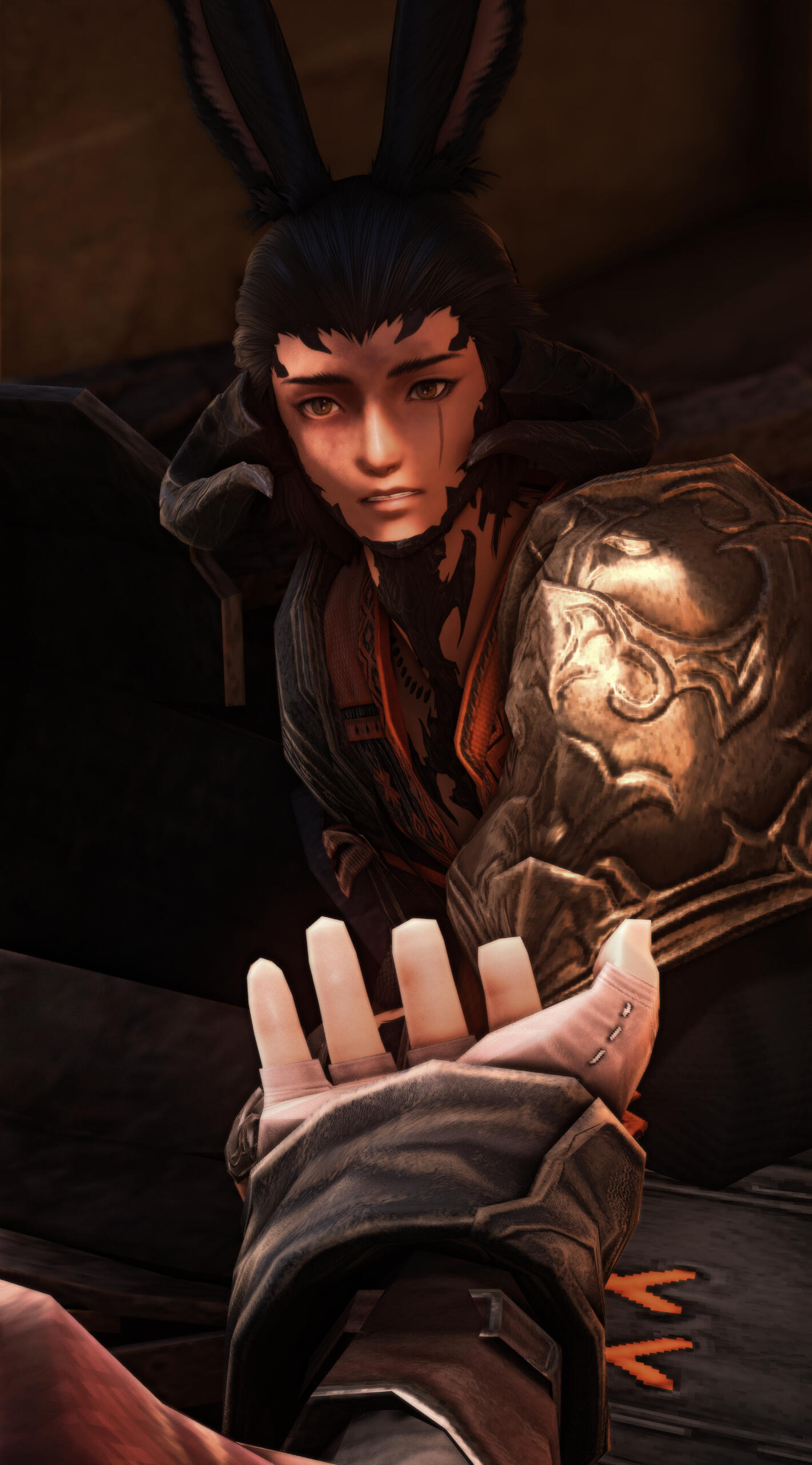 What felt like a few moments later, Bosco awoke on the deck of a ship, and his head pounded even harder than before. He was flat on his back. He coughed and sputtered as he tried to lean up. The people above him looked as if they’d just seen a ghost. Perhaps they had. He couldn’t get answers on what happened - the chaos was too much for people to comprehend. One thing was certain: he had no home to return to.From then on, the sea was the only life Bosco ever knew. Luckily, freight shipping was still highly desired work, so he never wanted for much as he continued to grow into an adult. The ships took him all over the world, where he mingled with all walks of life. Once, another sailor taught him how to pick locks, and the very first thing Bosco did was pick his way into the cargo hold. He learned it was a safe, quiet place to hide away in, and on many ships he'd spend days lost in the piles of merchandise, sometimes simply falling asleep.While docked ashore in Eorzea, Bosco ran into a weathered Viera who knocked him off his feet. The Viera skidded to a stop and immediately turned back to help Bosco back up. Wordlessly, the Viera kept running, and Bosco noticed he was pursuing a cloaked figure. Quiet as a mouse, Bosco curiously treaded behind them. He tracked them all the way to a corner of town, where he arrived just in time to witness the Viera end the figure's life.When all was calm, to Bosco’s shock, the Viera turned directly to where he hid. It was then he made offer to Bosco, where if he wanted, he could put his skills to use to help weaken the Empire. The concept made him ache in a way he never had before. Without a second thought, he accepted.